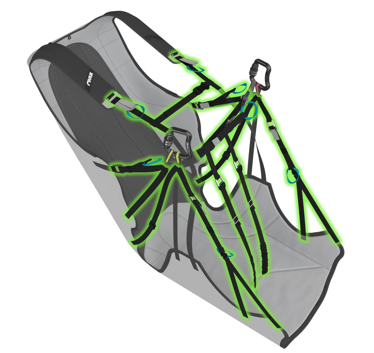Performancegurtzeug mit optimiertem Gewicht (3,85 kg in der Größe S) für exzellente Leistung. Durch die Verwendung der neuesten Niviuk-Innovationen (z.B. Nitinol) eignet es sich für lange Streckenflüge genauso wie für den alltäglichen Gebrauch.